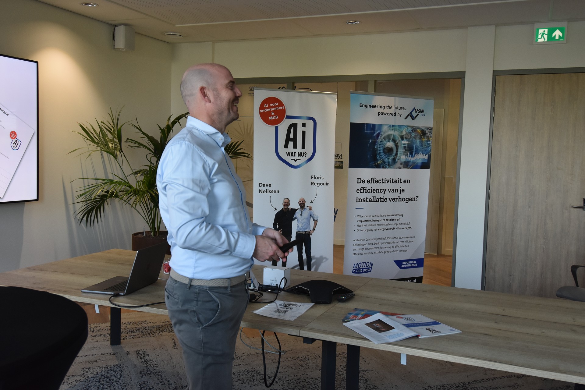 VSE is al 13 jaar lid van het High Tech Platform Mikrocentrum, dat bedrijven in de maak- en hightechindustrie met elkaar verbindt. Mikrocentrum organiseert regelmatig kennissessies voor haar leden. De kennissessie over AI in sales vond op 16 april plaats bij VSE in Schoonhoven. Namens het High Tech Platform verwelkomden Karin Mous en Marijke Vervoort de deelnemers. Vanuit VSE namen Radboud van Dusseldorp en Cas de Visser deze rol op zich. Er namen ongeveer 30 salesprofessionals deel, onder wie medewerkers van onze partners Festo en Eplan. De aanwezigen kregen praktische handvatten en waardevolle inzichten van Floris Regouin en Dave Nelissen van āAI, Wat Nu?ā, een organisatie die bedrijven begeleidt bij de implementatie van AI-oplossingen.